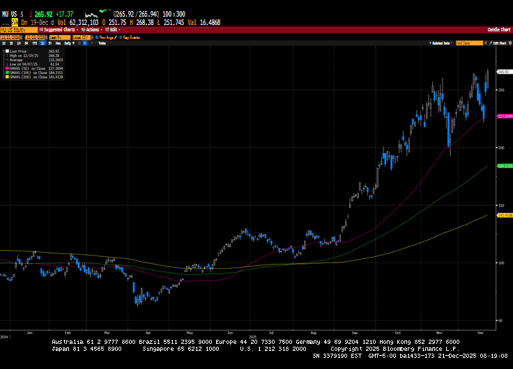 US markets finished the week mixed, with a late-week rally in technology mitigating early-week losses.  Micron Technology’s third-quarter results were excellent and helped propel technology stocks after the announcement.  Western Digital, Seagate, and Sandisk, other names in memory, traded higher in sympathy.  The announcement that Oracle, Silver Lake, and MGX had finalized a deal to own 45% of TikTok sent Oracle’s shares materially higher after the company had been under pressure from debt concerns and delayed data center buildouts.   As expected, the European Central Bank left its policy rate in place. At the same time, the Bank of England voted 5 to 4 to cut its policy rate by 25 basis points, and the Bank of Japan voted to raise its policy rate by 25 basis points to the highest level in 30 years.  The Trump Administration was quite busy this week, meeting with several candidates for the Federal Reserve Chairmanship, and announcing changes to pharmaceutical pricing, the reclassification of cannabis, a year-end bonus for active military personnel, and granting federal workers Christmas Eve and the day after Christmas off.